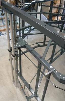 RV4 / RV6 El sistema de regulación vertical con reenvios es el más eficaz. Utiliza 4 reenvios mecánicos. La parte inferior de la cesta queda totalmente “libre” para los sensores. La transmisión utiliza varillas y cardanes de acero, no cadenas. Con las cestas grandes y con un transporte en secciones, la instalación queda muy sencilla.