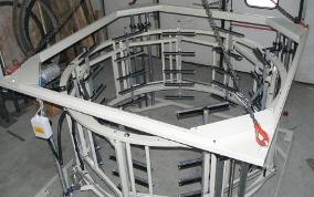 · Estructura mecánica independiente del tipo de guía. Facíl cambio de guía en cualquier momento, como cambiar de casquillos a cilindros. · Guía modular. Las guías son montadas en módulos, no como brazos. El módulo está montado con dos roscas. Si las exigencias cambian, se puede con sencillez cambiar el módulo, igual que comprar un aparato totalmente nuevo. El cambio se hace en 30 minutos. · Niveles de guía: los módulos llevan las guías en niveles, en número de 2-3-4-5-6-7-8 según necesidad. · Precisión al centro exacta! Las guías trabajan siempre en octogonal / 90° al centro. Es importante para alcanzar una velocidad superior. Con una cesta CM se puede mejorar como +5/10% · El batiente que lleva las guías es bastante corto, menor del radio. Esto ayuda mucho a la rigidez del sistema y permite tamaños gigantes. La burbuja guiada máxima existente, está guiada con una cesta CM. · La geometría de los pivotes utiliza un esquema con múltiplos de 3 porqué 3 es el sistema correcto de sujetar un circulo. Según los tamaños, hay 6 / 9 / 12 árboles. · Dimensiones: CM090-110-130-160-180-200-230-250-280 320-360-400-440-500-550-650-750-850-950-11Mt 12Mt |